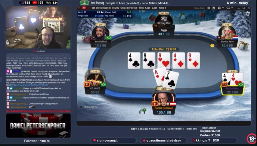 Даниэль Петерсен на стриме заблефовал соперника с каре.