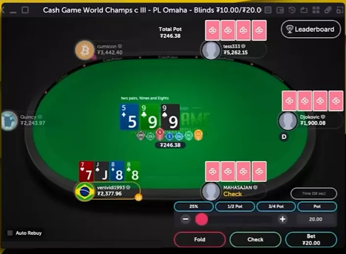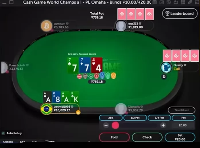 VeniVidi чекает, оппонент ставит полный банк.