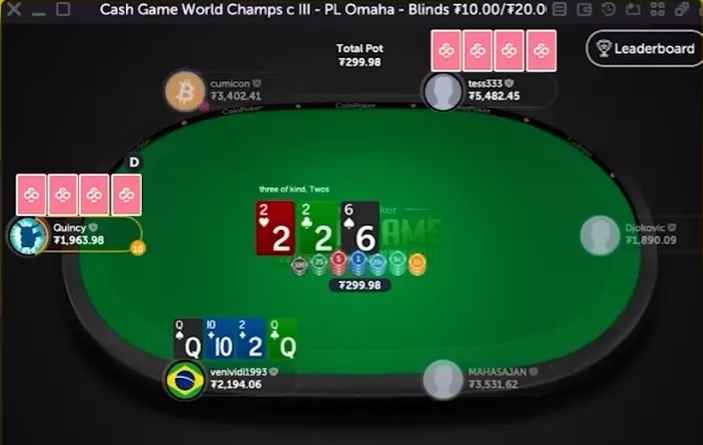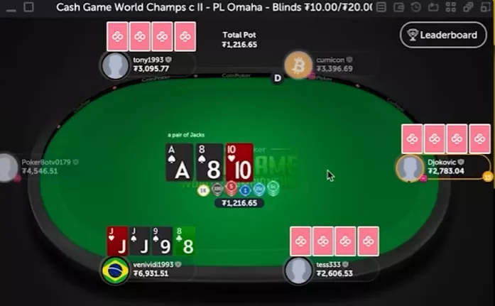 Здесь мы открылись, получили 3-бет и 4-бет. Наша рука довольно хорошо стоит против двух соперников с – получить такой расклад в 6-макс-омахе вполне реально. Если же нет, против нас будет много высоких карт.