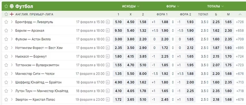 Роспись — не самая сильная сторона букмекера. Примеры количества дополнительных исходов по видам спорта для главных матчей дня: