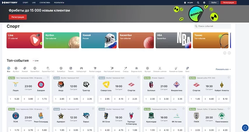 Невозможно узнать количество событий по видам спорта. Но, судя по охвату лиг и чемпионатов, БК «Беттери» — в числе лидеров по этому показателю.