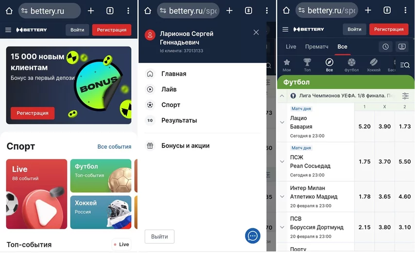 БК Bettery ранее предлагала скачиваемые приложения для Android и iOS. В начале 2024 года они недоступны. Ставки на спорт с телефонов и планшетов можно делать на основном сайте. Его интерфейс адаптирован под любую диагональ экрана. Отдельной мобильной версии нет.