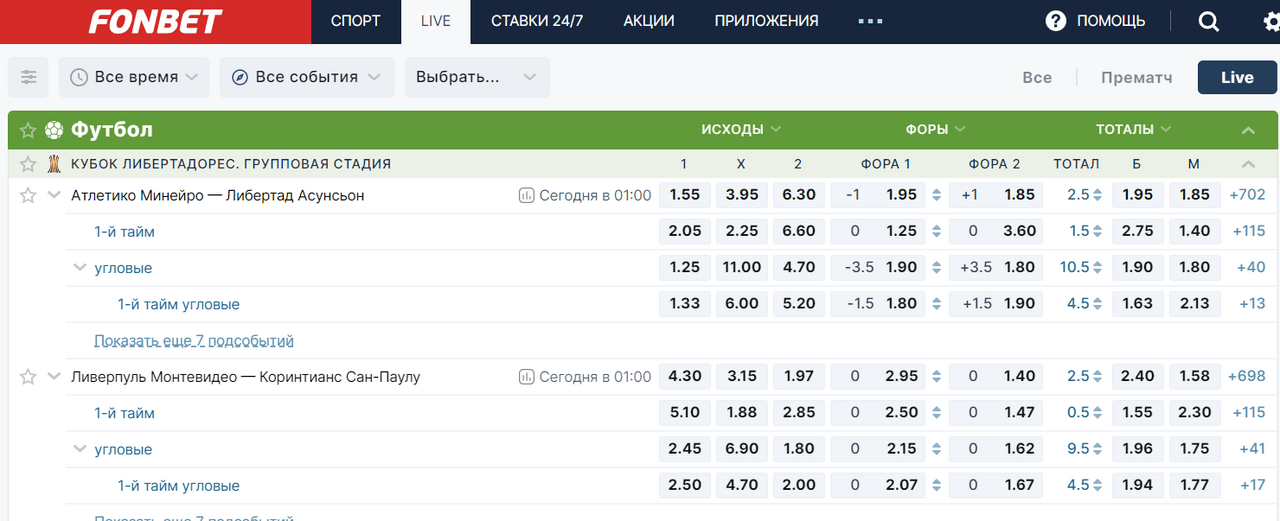Fonbet славится широким охватом спортивных событий. В линиях представлены как матчи ведущих лиг мира, так и локальные соревнования низших лиг. Контора предпочитает не выставлять чрезмерно привлекательные множители, чтобы не вмешиваться в гонку коэффициентов с конкурентами. БК ценят за один из лучших сервисов Live-ставок. Клиент может сделать ряд настроек, упрощающих ставки на официальном сайте. Фон Бет привлекает новых пользователей фрибетом в 2,000 ₽ за регистрацию.