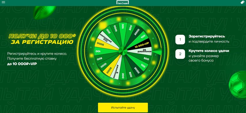 Одним из принципиальных плюсов Лиги Ставок является большое количество приветственных бонусов для новых пользователей. Например, после регистрации можно испытать “колесо фортуны” и получить фрибет, который сразу станет доступен для заключения пари. При должном везении можно получить до 10,000 рублей и статус VIP-клиента букмекерской компании одновременно.