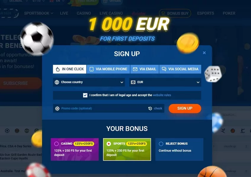 Важно указать, какое приветственное предложение вам нужно: для казино или БК. В случае ошибки поменять бонус уже не получится.