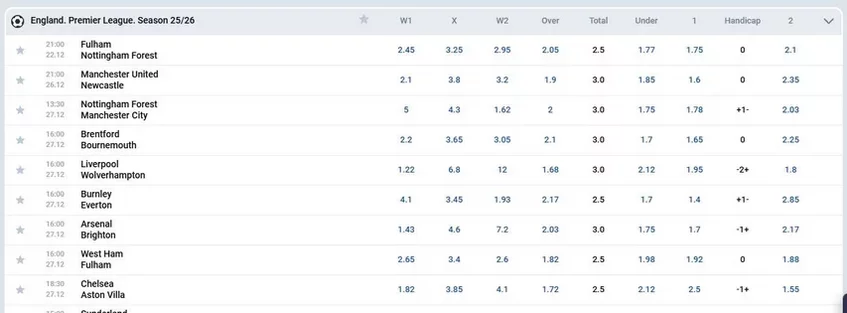 Количество дополнительных исходов меньше, чем у конкурентов. Вот средние значения для главных матчей дня: