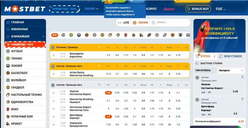 Процесс заключения пари в Mostbet — стандартный. После клика по выбранному коэффициенту он переносится в купон. При добавлении второго события активируется вкладка «Экспресс». После ввода третьего множителя можно собрать систему. Прочих экзотических ставок букмекер не предлагает.
