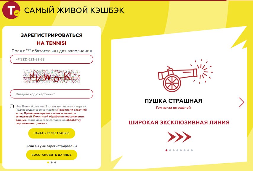 Создать учетную запись в букмекерской конторе Tennisi Bet можно через официальный сайт или мобильное приложение. Регистрация доступна только для граждан России, которые достигли 18-летнего возраста.
