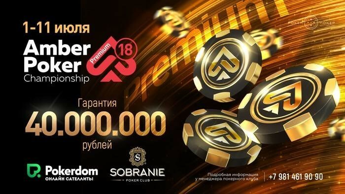 До 25 июня на Покердоме продолжаются сателлиты на восемнадцатый этап турнирной серии Amber Poker Championship в казино SOBRANIE (игорная зона «Янтарная»).