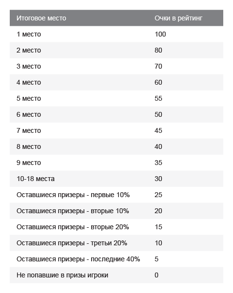 Очки в рейтинг начисляются по привычной схеме, которая используется на WCOOP: