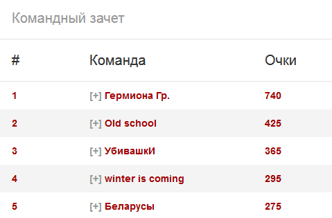 В этот раз мы решили обойтись без сложной системы зачетов в разных турнирах, будут просто индивидуальный и командный зачет. Играйте, занимайте высокие места в турнирах, и, возможно, вы получите дополнительный приз.
