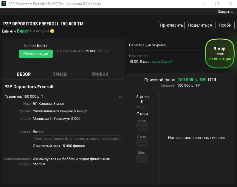 | Дата | Название турнира | Время старта, МСК | Бай-ин | Гарантия |
