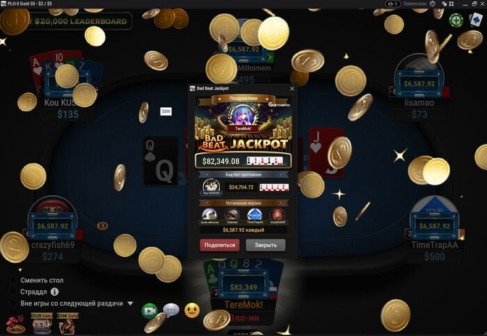Но уже полтора месяца автор доказывает, что вполне способен гриндить и столы с двузначными стеками: попадает в деньги в лидербордах, плюсует за счет рейкбека и успел поучаствовать в еще одном розыгрыше джекпота — правда, на этот раз поскромнее: