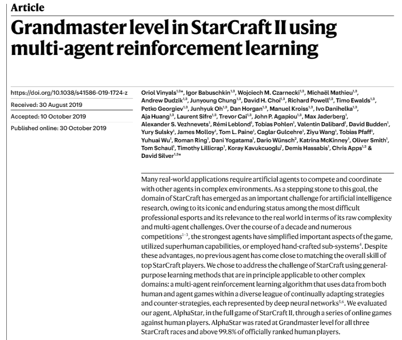 – Да! Если бы они сказали: AlphaStar играет от 5800 до 6300 MMR и как минимум находится в топ-1.5% игроков, это был бы другой разговор. Понятно, что весь современный мир, в том числе научный, живёт пафосными заголовками, но... по-моему, некрасивая получилась история.