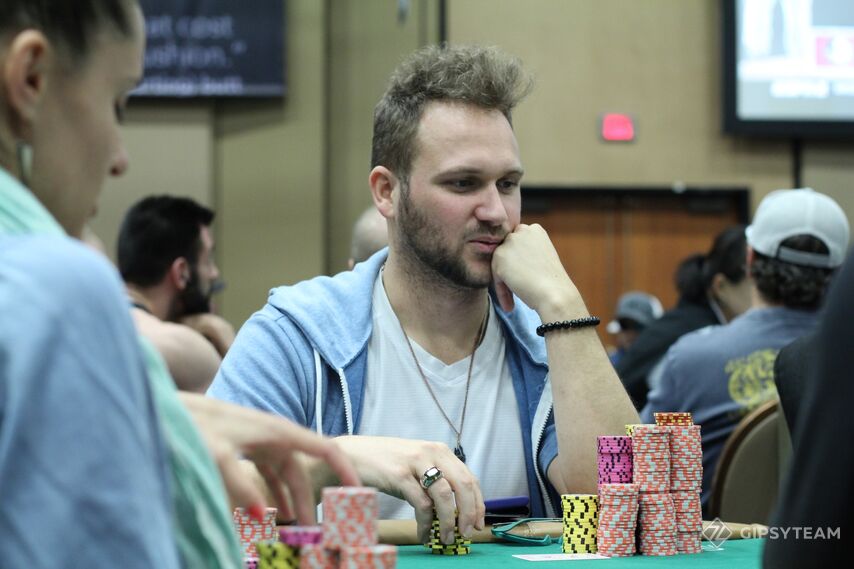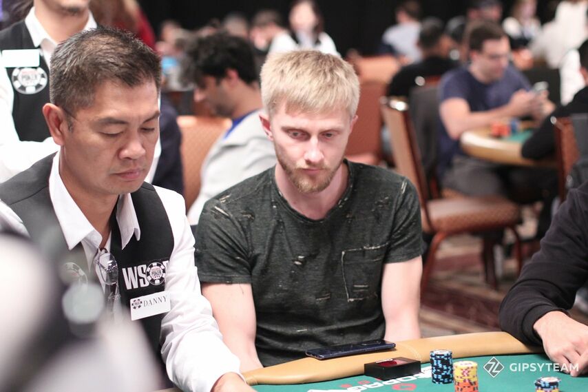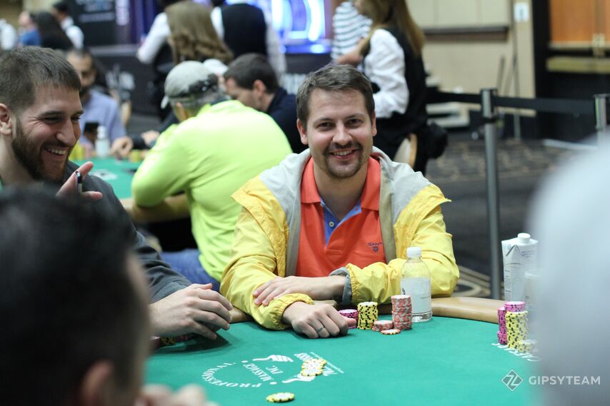 – Да, с учетом флеш-дро на терне. Думаю, я запутал его своими сайзингами, у меня могло быть что угодно – любые комбо-дро, тузы и воздух. Разве что валеты при таком розыгрыше исключены, кроме AJ. Все мои тузы – сильнее его, потому что тузы слабее я заведу коллом. У меня могли быть все мастевые бродвеи, что-то типа Kx Tx с комбо-дро, а на такие руки у него практически нет блокеров. По нашей динамике он сыграл стандартно, мы постоянно зарубались и старались обыграть друг друга.