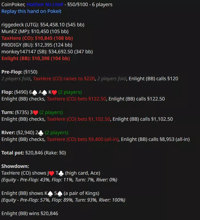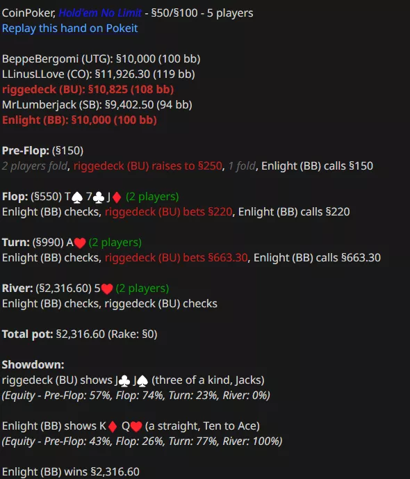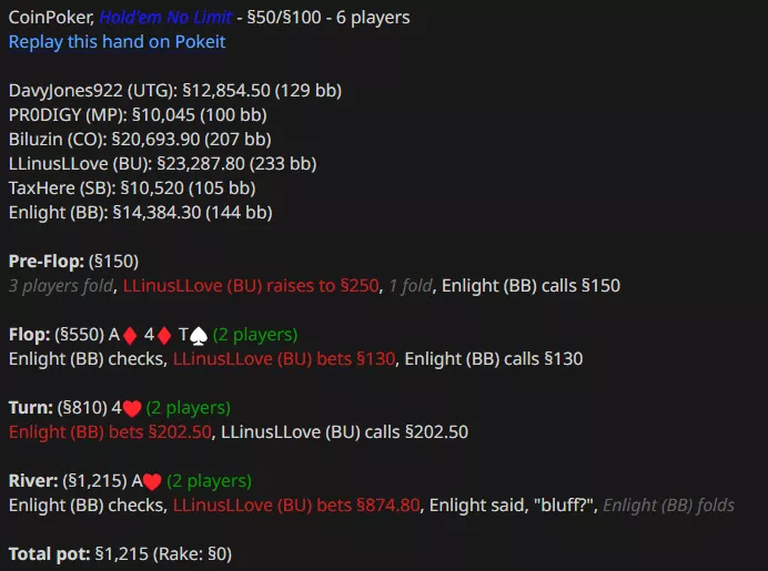 Энлайт остался не в восторге от блефа Джанглмена, которого Линус опять вскрыл с A-хай.