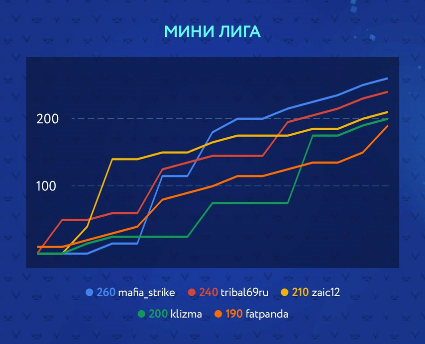 Борьба в Мини лиге вышла не менее напряженной: лидеры менялись чаще, а итоговый разрыв между первым и вторым местом составил всего 20 очков.