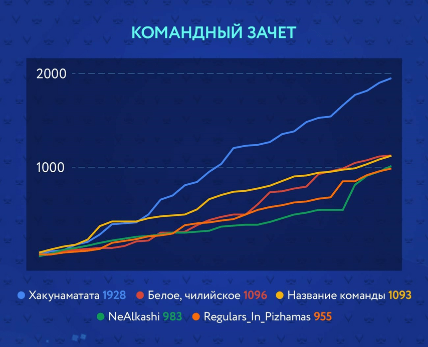 Вся интрига командного лидерборда пришлась на второе и третье место: любители вина «Белое, чилийское» и постмодернисты из «Название команды» на заключительном этапе шли нога в ногу, но фотофиниш отдал победу ценителям латиноамериканских виноградников. Итоговый отрыв составил всего три очка! Лучше всех выступил pl_profit: сыграл в 29 из 30 турниров, 17 раз попал в деньги, выиграл два турнира и принес команде 388 очков.