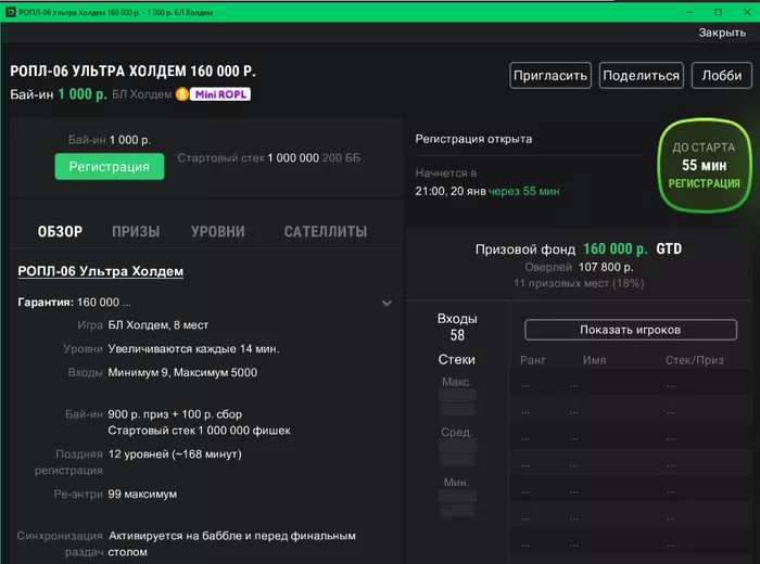 Поздравляем участников и предлагаем начать готовиться к афтепати! Уже в пятницу, 19 января стартует Mini ROPL: этап с демократическими бай-инами из 72 турниров. Участие в самых недорогих турнирах обойдется всего в 200 (хотя стоит закладывать реэнтри), а всего разыграют свыше 13,000,000. Самые большие призовые подготовили в мейне: 1,000 бай-ин, 3,000,000 гарантия. Он пройдет в два этапа: первый день запланирован на 19:00 по Москве 10 февраля, а доиграют на следующий день в это же время.