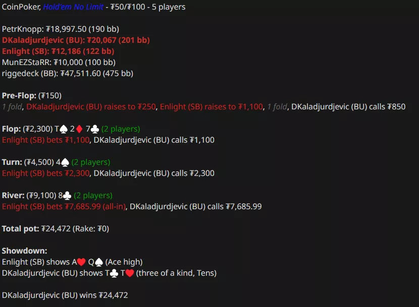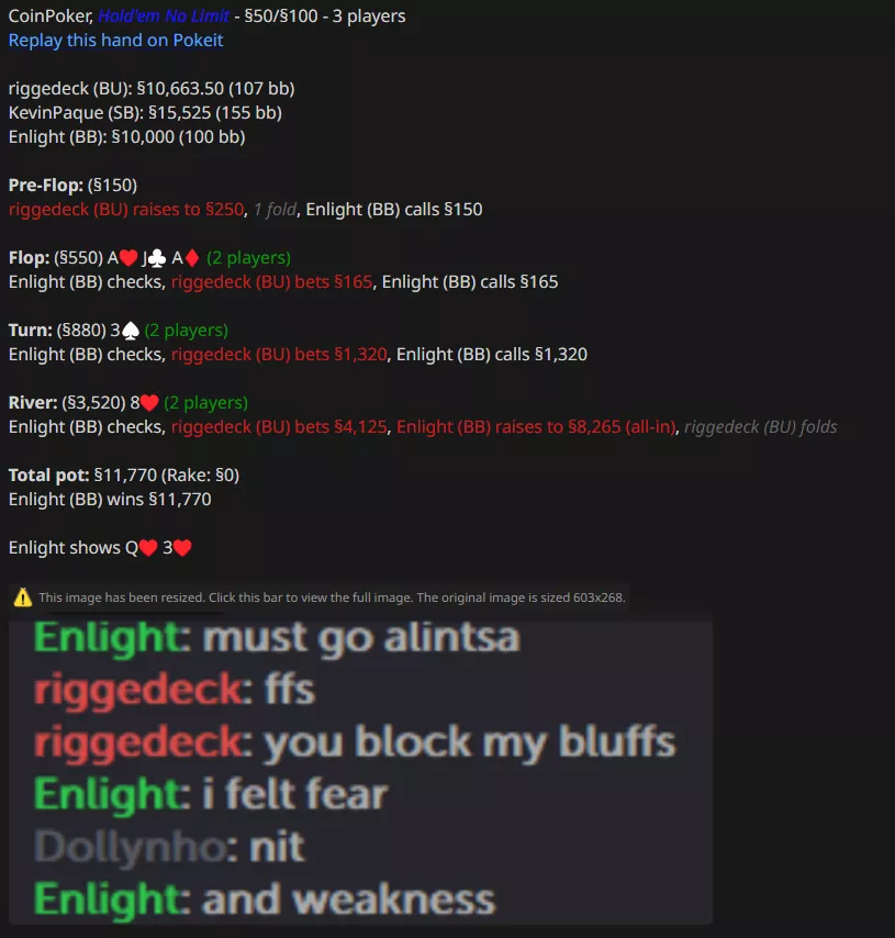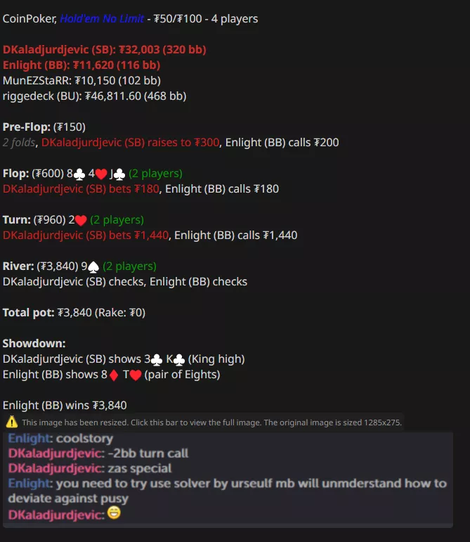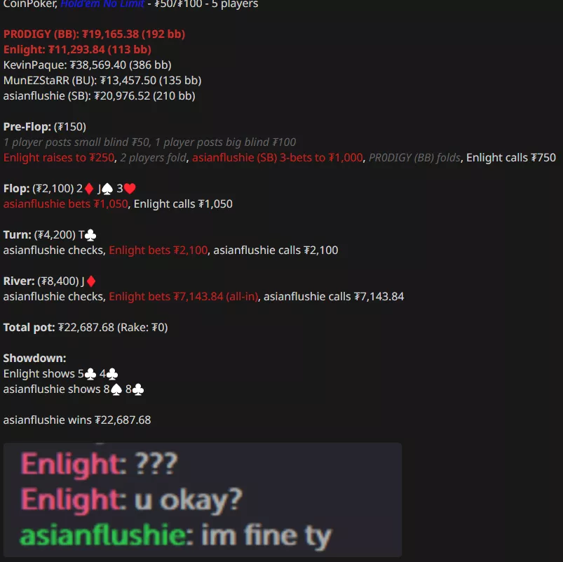 Понимаю, что это выглядит, как попытка оправдаться, но мне ужасно заходит, хотя и сам я допустил несколько ошибок в глубоких стеках. Но переживать не стоит, в этом месяце я перебрал около $100k на ACR, так что все не так ужасно. На Coin я проиграл $125k (Ред. – по итогу минус превысил $200k), а на ACR выиграл больше $150k.