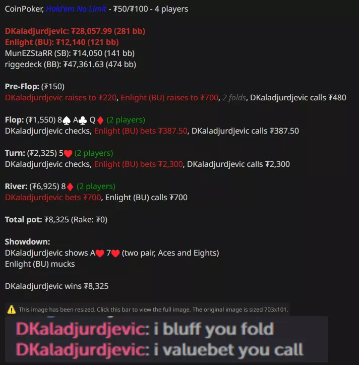 DKaladjurdjevic: за то, что пошел блефовать с такой рукой
