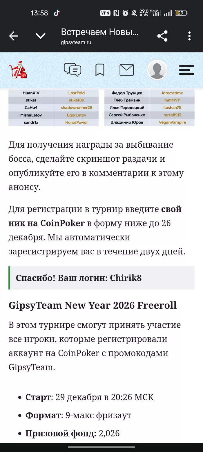 GipsyTeam New Year 2026 Freeroll