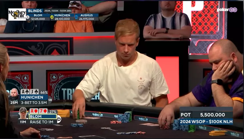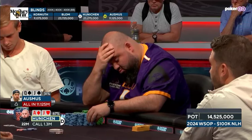 В топ-3 Хуничен и Осмус выставились на префлопе. На терне пришел туз.