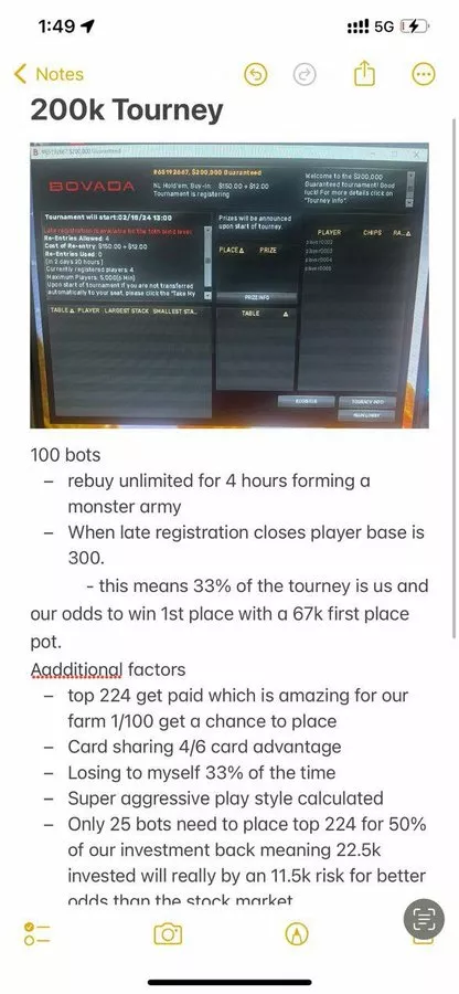 – Когда регистрация закрывается, в турнире остается 300 человек, то есть 33% поля – наши боты. Это дает нам отличные шансы на первое место и 67k.