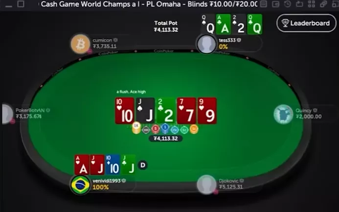 Игрок на второй позиции рэйзит, у VeniVidi на ББ , он переставляет до $220. Оппонент коллирует.