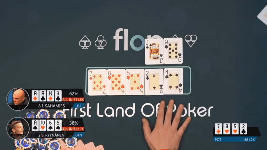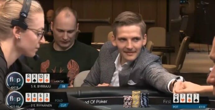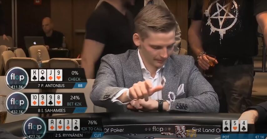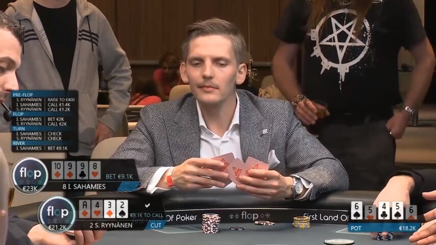 Повтор на тёрне, чек – чек. Повтор на ривере, и Илари превращает свою пару в блеф. Сампо пытается вспомнить экшен.