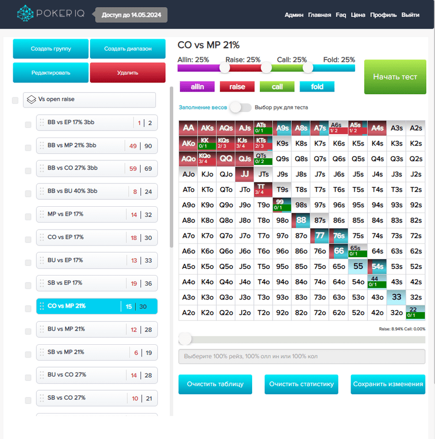 – Отчеты для аналитики статистики пользователя относительно GTO-стратегии.