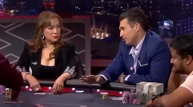 Мне удалось выиграть ряд банков и увеличить свой стек на десятки и сотни тысяч долларов, а потом я сыграл несколько больших раздач, в основном против Дженнифер Тилли.