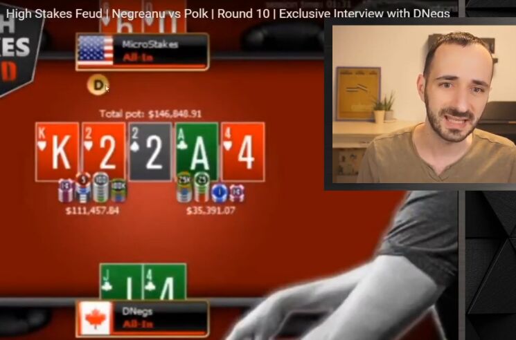 Добавлю, что мне нравится, как эта раздача контрастирует с имиджем Негреану. Многие говорят, что он недостаточно блефует, но вот мы видим, что это не так. Даже если в этой конкретной раздаче он потерял несколько бб технически небезупречным блефом на тёрне, сам факт появления подобных рук в его диапазоне говорит о том, что разрыв в классе между игроками сокращается.