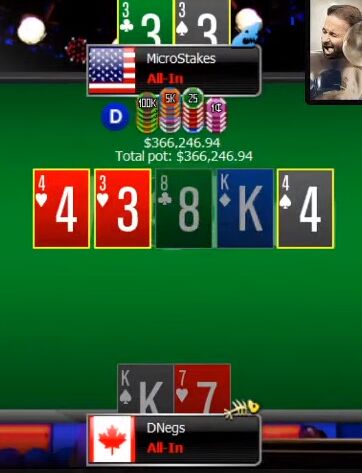 «Сегодня у меня четыре раза были тузы, – добавил Негреану уже в твиттере. – Трижды он сфолдил на баттоне и ещё один раз выкинул на 3-бет. Да, эта сессия получилась особенной!»