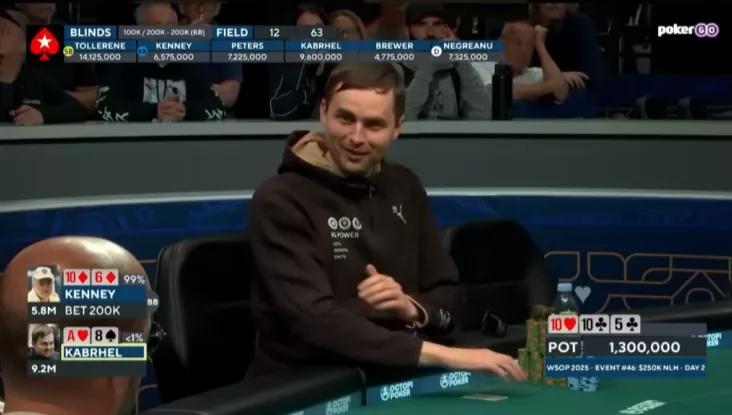 Фоксен: Большинству игроков я бы порекомендовал никак не подстраиваться под разговоры Кабрхела, вести себя так, будто его нет. Но Брин достаточно опытный и уверенный в себе игрок. Может быть, он счёл, что раз Мартин завёл этот разговор, значит, он не хочет видеть лид, следовательно, лидить нужно чаще. Или ему просто показалось, что будет весело залидить с сильной рукой.