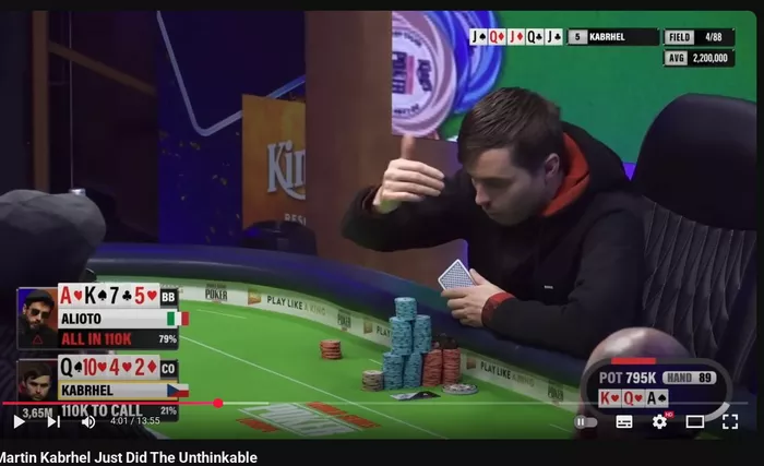 Понятно, да? После чего просто БЕРЕТСЯ за крупные фишки перед ним, но не двигает их в центр, и так же не открывает свою руку. Опп, в этот момент, без задней мысли переворачивает карты. Мартин к ним присматривается, смотрит ещё раз на флоп.. и такой, "нее, я фолд") Все ахуевают, дальше начинаются разборки (итальянец позвал флора), которые заканчиваются ничем ("Я не говорил, что я коллирую, я сказал "Открой свою руку", кто тебе, блять, доктор?"), кроме очередного троллинга Мартина: "He accidentally exposed the hand. So he should get some warning!"