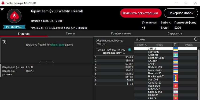 Старт для банкролла могут дать бесплатные турниры. Полное расписание бесплатных турниров и актуальные пароли на фрироллы можно найти в специальном разделе на GipsyTeam. Каждую неделю проходят фрироллы от GT на крупнейших покерных площадках. За победу дают не только деньги, но и очки в лидерборде «Лиги фрироллов». Лидеры рейтинга награждаются специальными призами.