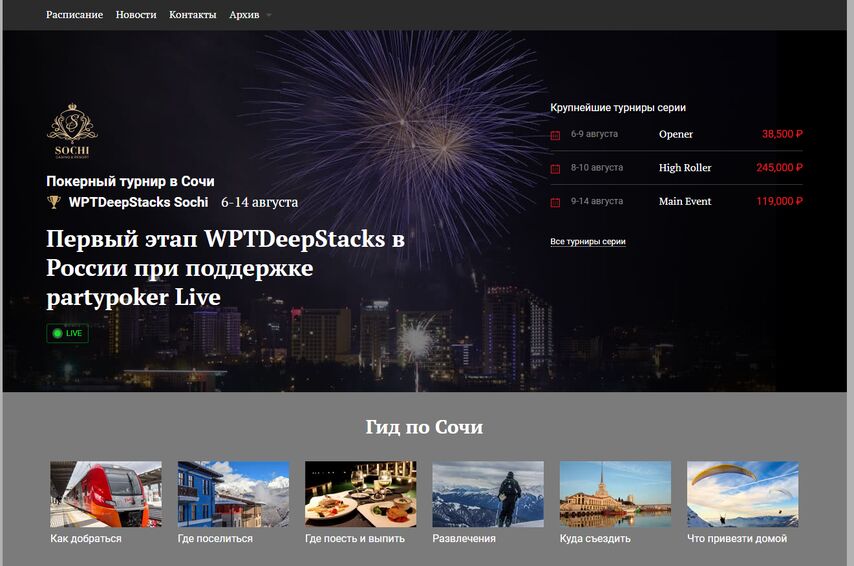 - В офлайне. Живой в России живет в четырех игорных зонах, самая популярная из которых — это Красная поляна в Сочи. В одноименном казино проходят крупнейшие мировые покерные серии, за расписанием которых можно следить на особой странице.