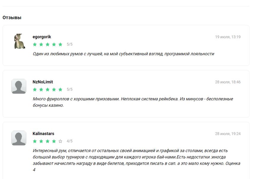 - Отзывы. Здесь собраны не вымышленные отзывы, которые показывают, насколько в руме созданы приятные условия для игры, а реальные. Их оставляют пользователи сайта. Написав несколько строчек, в которых поделитесь опытом о своем знакомстве с конкретным покер-румом, вы поможете новичкам принять решение о выборе.
