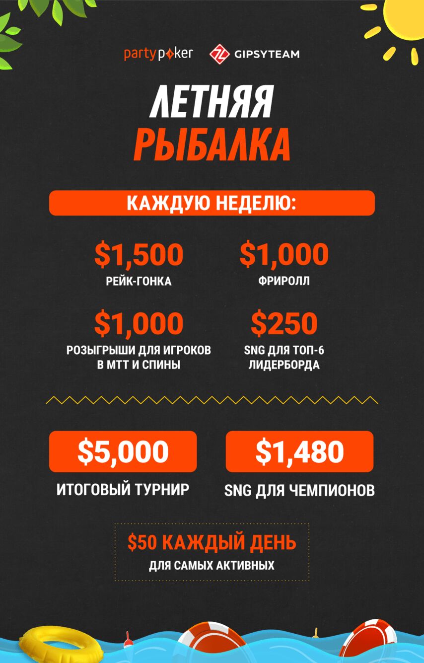 Для игроков GipsyTeam, которые зарегистрируются в руме по ссылке, регулярно проводится акция — сезонная рыбалка. В течение месяца на патипокер разыгрывается $20,000. А все участники фестиваля попадают в заключительный фриролл с призовым фондом $5,000.