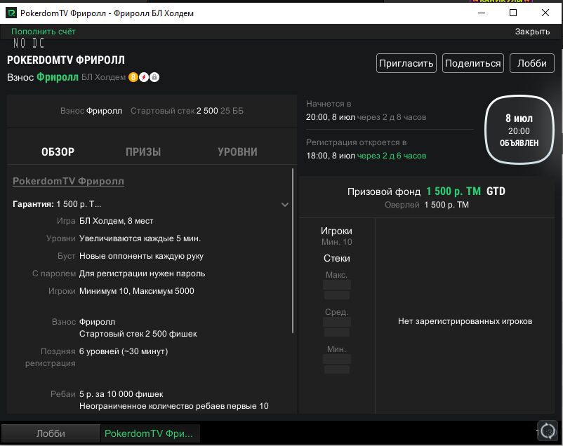 Самый крупный русскоязычный рум активно привлекает новых игроков и разыгрывает много денег в бесплатных турниров. Они бывают нескольких типов — в одних участие открыто для всех желающих, другие требуют активно следить за социальными сетями в поисках пароля: