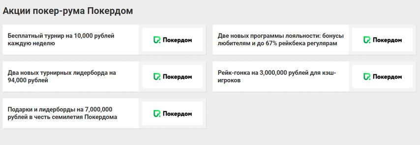 Все новые игроки Покер Дома получают бонус за первый депозит. Подробнее со списком акций можно ознакомиться на странице со всеми бонусами на GipsyTeam.