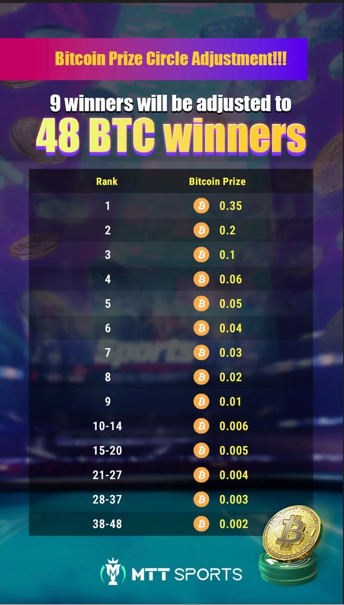 - Каждую неделю разыгрывается 1 биткоин. В первые 8 недель его делили между топ-9. Затем призовую зону расширили до 48 игроков.