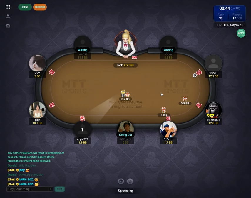 MTT Sports — новый криптовалютный проект в сфере покера, заметно выделяющийся на фоне стандартных покер-румов: играют здесь на собственный токен и USDT, можно выиграть настоящие и довольно внушительные деньги - за счет фрироллов с призовым фондом 1 биткоин.