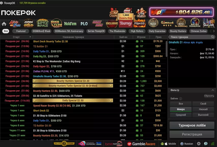 И профессионалам, и начинающим не обойтись без Покерка, поскольку в любое время суток на кэш-лимитах вплоть до NL200 одновременно открыты десятки столов. PokerOK предоставляет доступ российским игрокам к главному покерному пулу — сети GGNetwork.