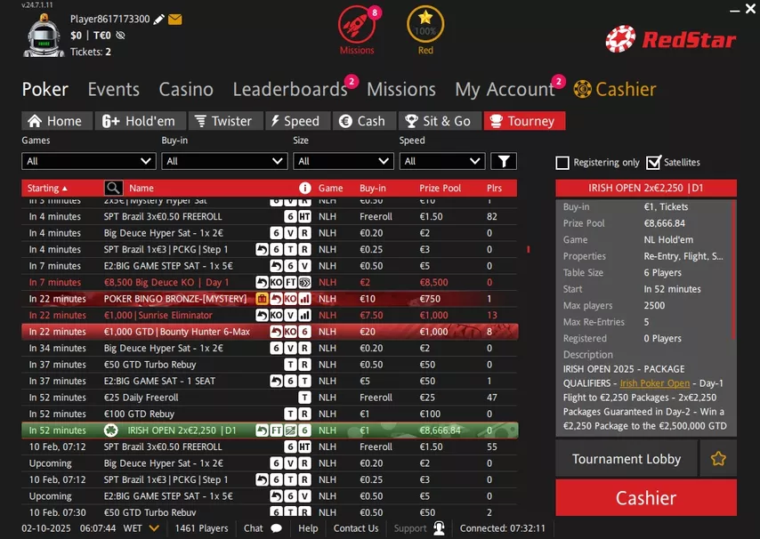 У RedStar Poker рекордный для индустрии бонус — 2,000 евро (200% к сумме депозита). На обналичивание отводится 60 дней.