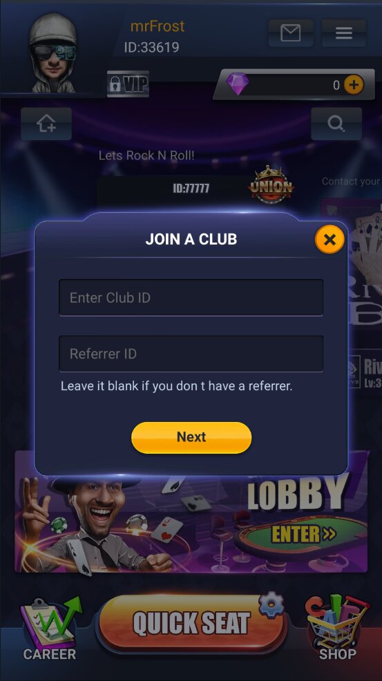 В отличие от привычных покер-румов, фишки относятся не к приложению в целом, а к конкретному клубу.