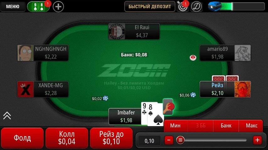 Быстрый покер Zoom (омаха и омаха хай-лоу до $0.10/$0.25):