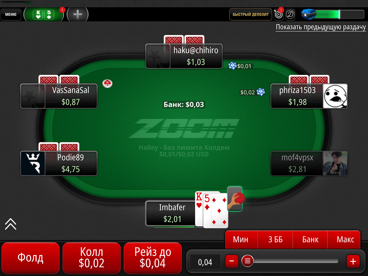 Быстрый покер Zoom (омаха и омаха хай-лоу до $0.10/$0.25):